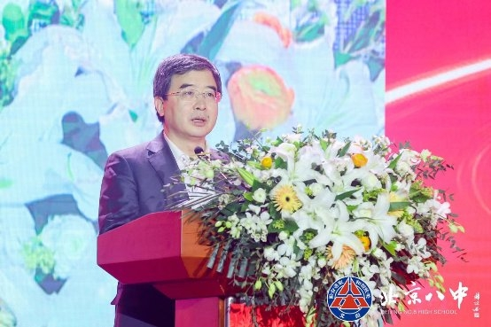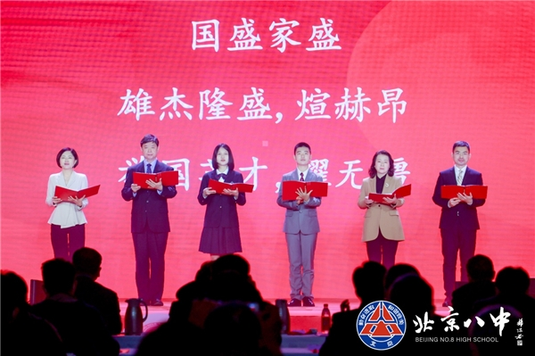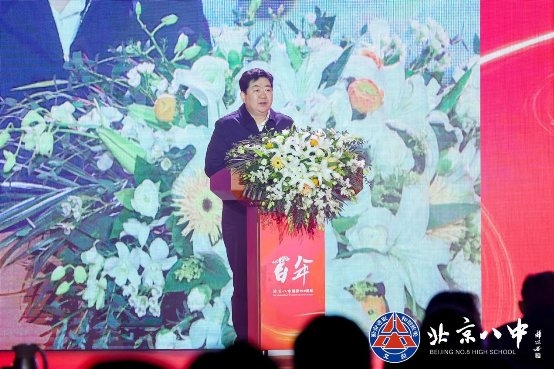 西城区委副书记、区长孙硕和北京市教育工委副书记李奕在致辞中高度肯定了北京八中是素质教育的先行者和集成者,为西城和首都中学教育的发展做出贡献和典范。气势磅礴的诗朗诵《两个百年 时代有我》将气氛推向高潮。
