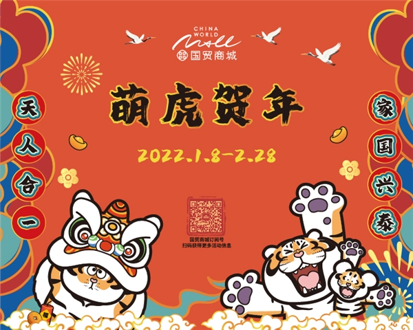 1月8日起,国贸商城携手国潮大热IP、不二马大叔笔下的“胖虎”,打造一系列“虎虎生威”的虎年装置,为国贸室内外各处增添新春气氛。国潮风满满的专属打卡区和各种憨态可掬的胖虎雕塑,有着“福气满满”、“笑口常开”、“开年大吉”等吉祥寓意。国贸商城用一种具有新意的形式将传统元素与轻松诙谐的胖虎IP相结合,打造饱满体验和寄托愿景的贺岁活动。