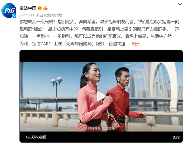 (图4:宝洁CARE+「倍速前行,成就光盲」公益宣传片上线)