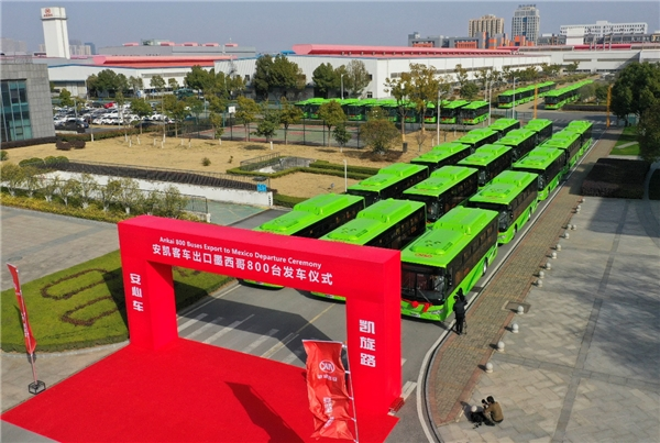 春和景明,击鼓催征。2022年3月8日,“安凯客车出口墨西哥800台发车仪式”在安凯客车厂区隆重举行。800辆10.5米安凯天然气公交车的载梦远航,不仅成为中国客车迄今出口墨西哥的最大订单,而且将为北美洲及全球的低碳发展传递“绿色能量”,同时也为中国客车出口带来了强劲的增长动能。
