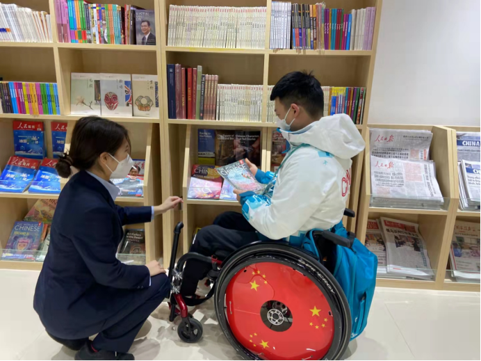 在张家口冬残奥村书报亭,营业人员王佳妍特意购买了22幅中国传统带框剪纸送给各国运动员。“很多运动员来报刊亭借阅书籍了解中国文化,我想一幅小小的剪纸可以让他们更直观地了解中国,感受到中国人的热情和温暖。”王佳妍的礼物让国外运动员非常激动,纷纷向她了解中国的剪纸艺术,很多运动员都说书报亭是他们最喜欢逛的冬残奥村场所。