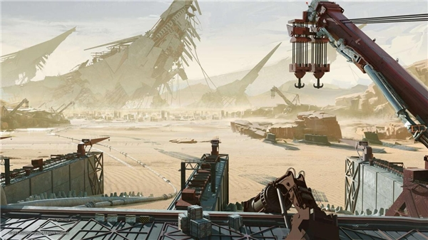 如上文所说,前文明已经消失,但是他们留下来的工业建筑和先进技术还彰显着他们曾经的存在。在游戏中,玩家需要建立自己的工业系统,回收并消化他们的技术,从而不断推动塔卫二新文明的进步。概念图中可以看出来,这些工业建筑都被巨大的源石结晶穿透破坏,没有了往日的光辉和力量,坚硬的钢铁像纸片一样被撕开,真是难以想象当初毁灭时是一幅怎样的“盛况”。
