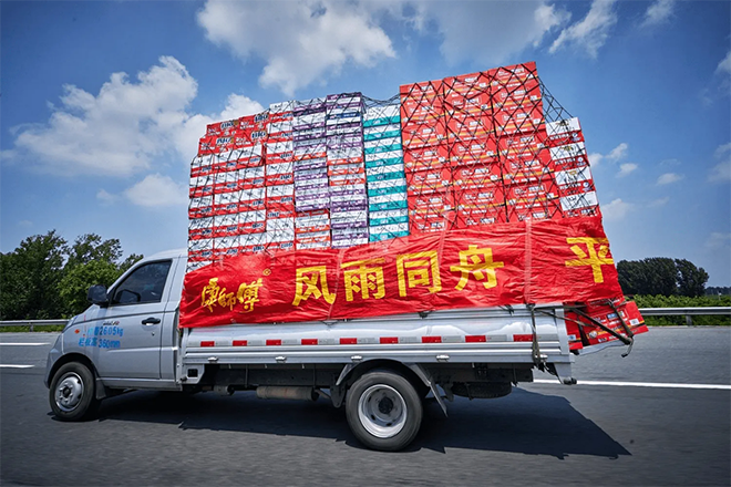 郑州“7.20特大洪水”期间,康师傅也始终冲在第一线,将超过120万份爱心物资陆续送至103个受灾单位,覆盖河南省14市23县,并把自行研发的“急难救助车”开到新乡等受灾最严重的地区。