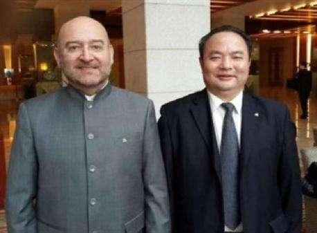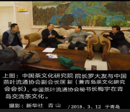 上图:中国茶文化研究院院长罗大友在北京接待外国媒体负责人
