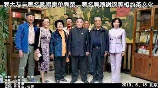 上图:中国茶文化研究院院长罗大友(前排右三)与著名歌唱家、《雁南飞》原唱单秀荣(前排左三)、文化部原办公厅主任徐恩荣、著名影视演员谢刚(陈云扮演者)、民主党派中央机关骨干杜萍等相约茶文化。