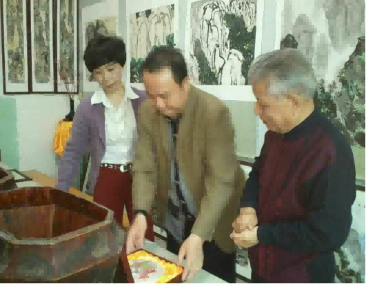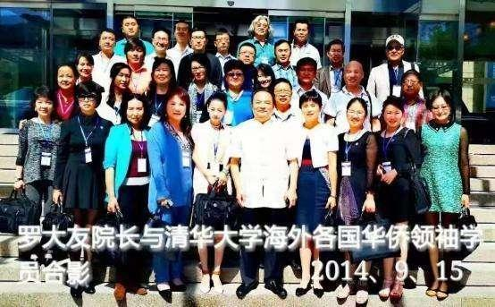 《海外华侨领袖们在清华大学向中国茶文化研究院院长罗大友(中)赠送礼物》