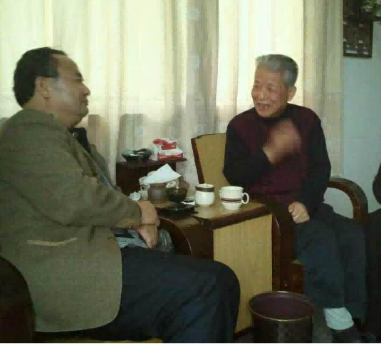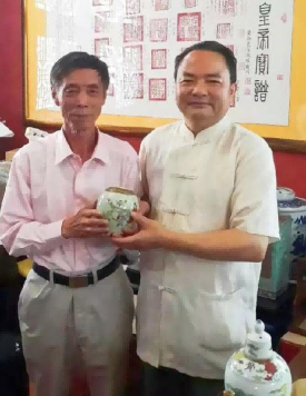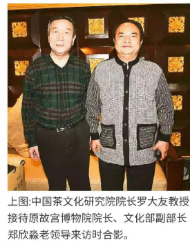 上图:中国茶文化研究院院长罗大友(右)与当代古陶瓷鉴定专家田老师在茶文化工作室。