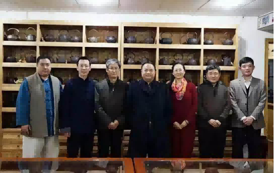 上图:中国茶文化研究院院长罗大友(左二)在台北市接待台湾文化学者来访交流时合影。