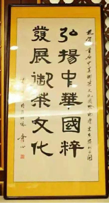 上图:著名书画家、徐悲鸿再传弟子都本基为中国茶文化研究院院长罗大友赠送的“茶和天下”墨宝。
