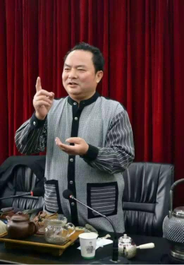 上图:中国茶文化研究院院长罗大友在央企讲座茶文化。