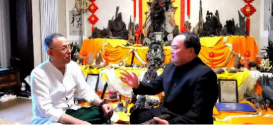 上图:中国茶文化研究院院长罗大友(中)与世界洪门总会会长刘沛勋(左一、台湾籍)、著名魔术师辛刚(右一)相约北京。