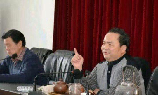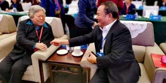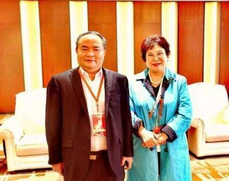 上图:中国茶文化研究院院长罗大友(左)与民政部副部长、国家民委副主任陈虹(正部级)在会议中。