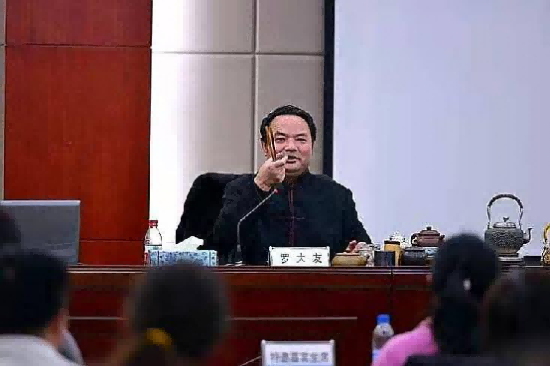 罗大友院长致力于茶文化多年,他表示只有中国六大茶类才是一个完整的文化体系。所以,恢复、弘扬、传承博大精深的茶文化功在当代,利益千秋。罗大友院长经常在讲座上道出了他对茶和博大精深的中国五千年茶文化的深刻诠释、感悟、喜爱和期待,罗大友不仅仅是讲述着茶文化,更是不遗余力、年复一年,背负着经典茶具、带着好茶踏遍了祖国的山山水水,进行考察调研。被誉为“中国古代宫廷茶器收藏第一人”。