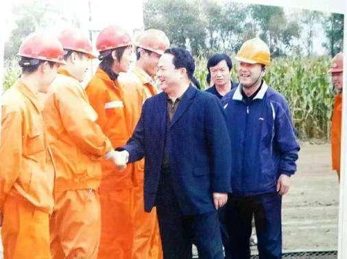 中国茶文化研究院院长罗大友在央企基层考察时与工人们握手