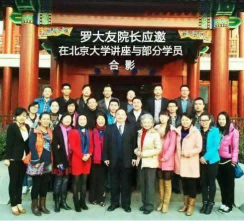 上图:中国茶文化研究院院长罗大友(前排中)在北京大学讲座茶文化时与学员们合影