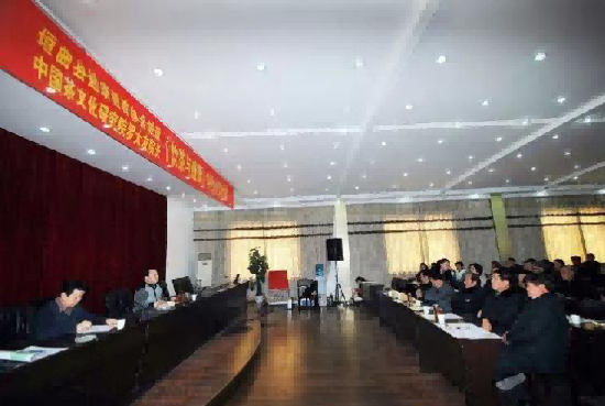 上图:中国茶文化研究院院长罗大友向机关干部、骨干讲座茶文化。