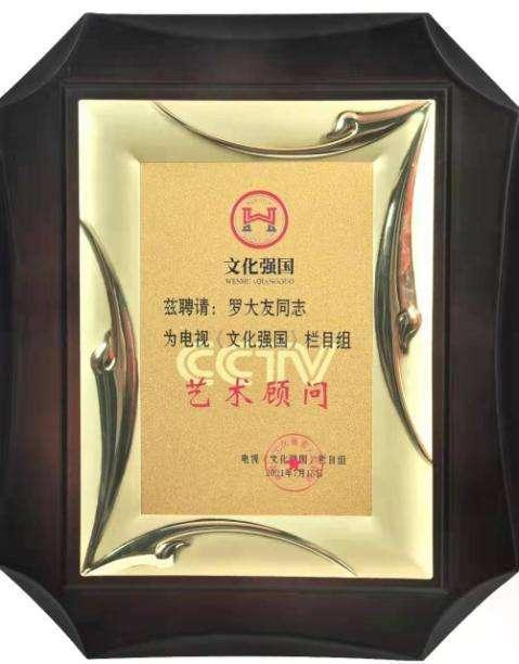 中央电视台向中国茶文化研究院院长罗大友颁发的《“文化强国“艺术顾问》证书