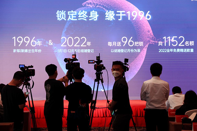 结合全新品牌定位“since1996”以及品牌年轻化策略,汇泰龙应势发布了“锁定终身,缘于1996”年度品牌福利活动:1996年出生、并在2022年登记结婚的新人,有机会免费获赠价值2399元的汇泰龙D1全自动智能锁1把。