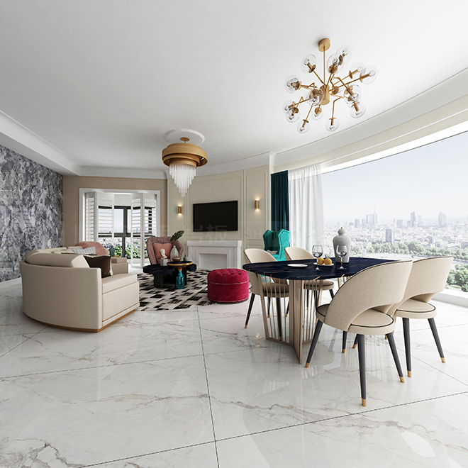 900×1800mm大规格产品,减少砖缝、表现力更强,让整个空间明快、通透,去除各种繁杂的装饰,给人留下简约的视觉效果。