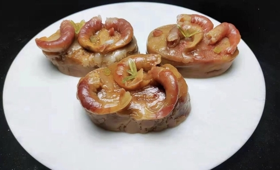 靠山吃山、靠海吃海,西班牙的没事带有浓郁的地域特点,而面包虾的做法便是将欧洲传统的吐司面包与海岸特产的白虾相结合,创造出西班牙人早餐上的特色美食面包虾。利用天然美玉还原面包上的疏气孔洞,在上方点缀自然带有红虾颜色美玉雕琢而成的虾仁,浑然天成,可以说兼具人文气息,又有极高的艺术价值。