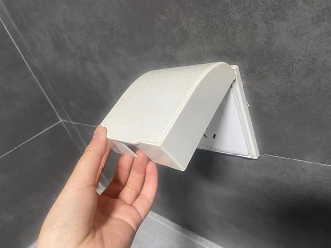 现在市面上有两种打着“防水”的插座。一种是普通插座上外加一个防水盖,很多人在厨房、卫生间、阳台这些地方会这样做。但实际使用过程中,这种“防水盖插座”要经常开合,使用很不方便,也容易坏。最重要的是,防水盖只能防外部喷水、溅水,防水盖周边的缝隙依然无法防止水、水汽等进入,插座本身的遇水漏电、触电的隐患依然存在。这种防水盖+普通插座=伪防水,因为有防护盖,心理上感觉会好一些,进而容易让人大意,反而增加了用电风险。
