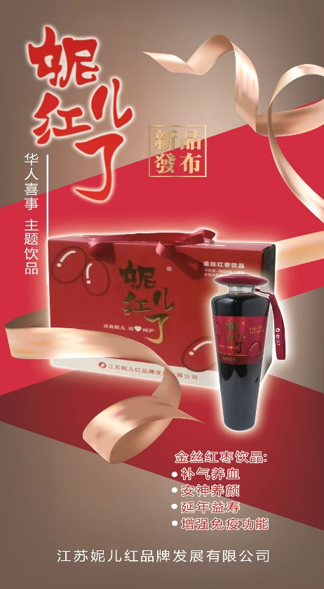 妮儿红品牌首款华人喜事专用饮品是融合了中国传统的“红文化”“喜文化”“和文化”“健康文化”“青少年文化”为一体的金丝红枣产品。这款金丝红枣饮品采用的是唯一一款中医学上能入药的金丝红枣为原料,采用的低温萃取技术,不加防腐剂!金丝红枣特有的成分环磷酸腺苷、黄酮、皂苷、多糖、多肽及多种维生素给产品赋予了多种奇效,防癌抗癌、抗氧化、清除自由基、延缓衰老、提高免疫功能、平衡三高、补养气血及安神助眠等多种效果,具有五种文化特质的华人喜事主题饮品必将为每一场婚宴增辉添彩。